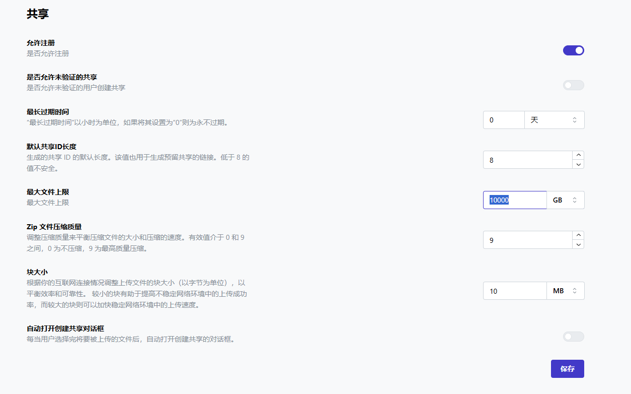 📤 大文件分享:支持断点续传与超大文件上传(配合反向代理优化);